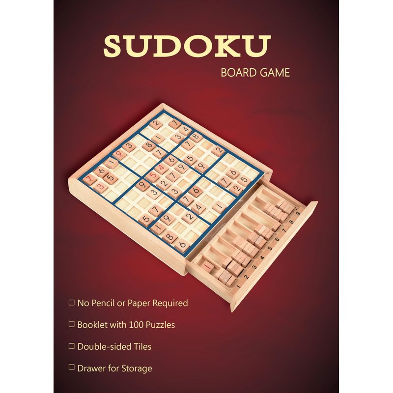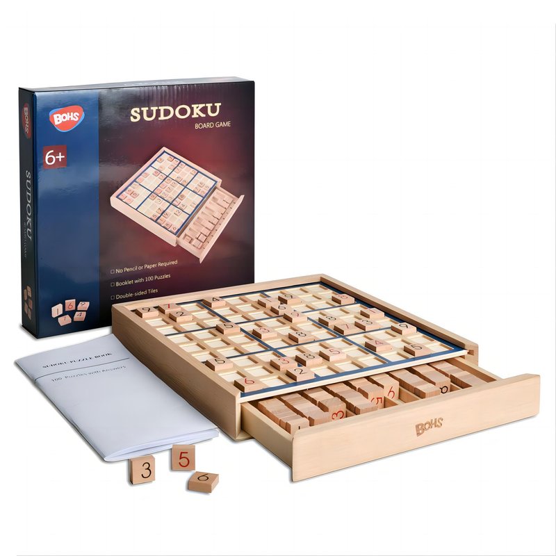BOHS Wooden Sudoku Board Game with Drawer - with Book of 100 Sudoku Puzzles for Adults - Brain Teaser Desktop Toys
