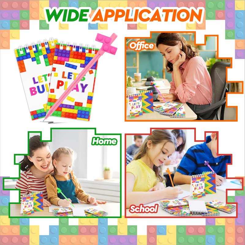 - 【Creative Building Block Fun】Dive into a world of creativity with our building block party set, featuring 24 block-patterned notebooks, 24 block-shaped pens, and 100 colorful stickers. Perfect for kids who love to build and explore!