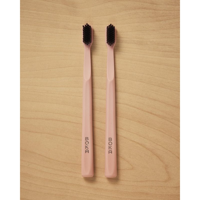 Boka Classic Manual Toothbrush with Extra Soft Activated-Charcoal, Tapered Bristles, Bioplastic Handle That Includes Travel Cap, Dentist-Approved, Great for Adults and Kids, Pink (Pack of 1)