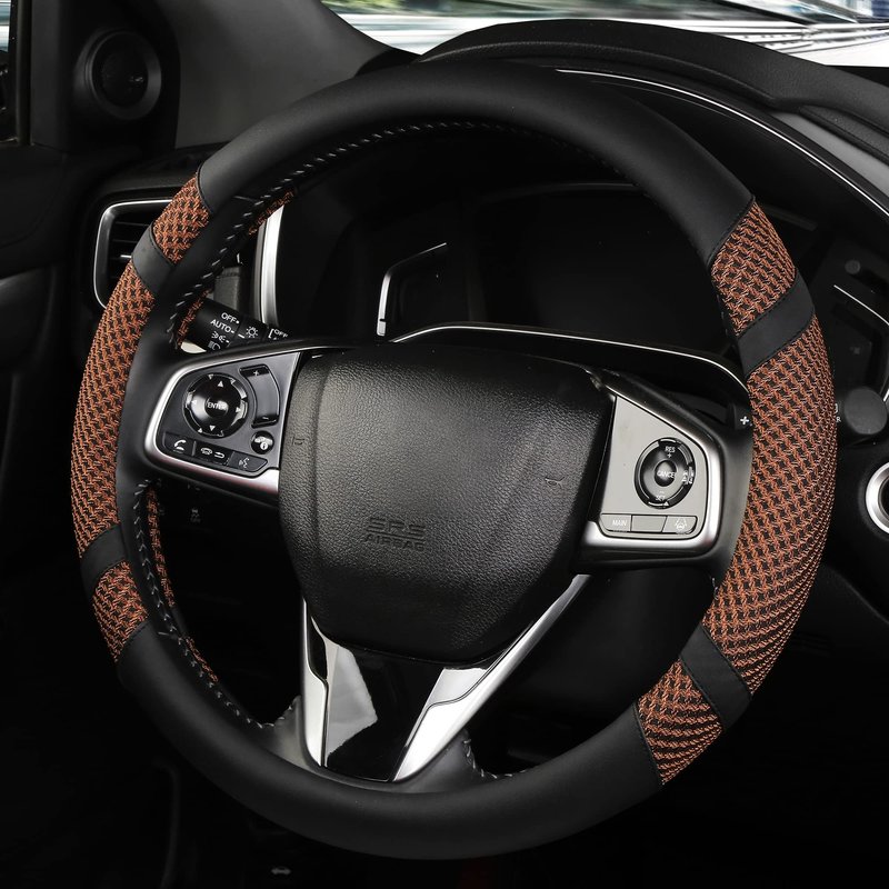 - 【Exterior leather and ice silk material smooth and breathable】The exterior of this car steering wheel cover is made of wear-resistant PU leather, which is stylish and beautiful, giving you an excellent touch and comfortable experience; the ice silk mesh design on both sides, No sultry feeling and quick to absorb sweat, warm in winter and summer cold.