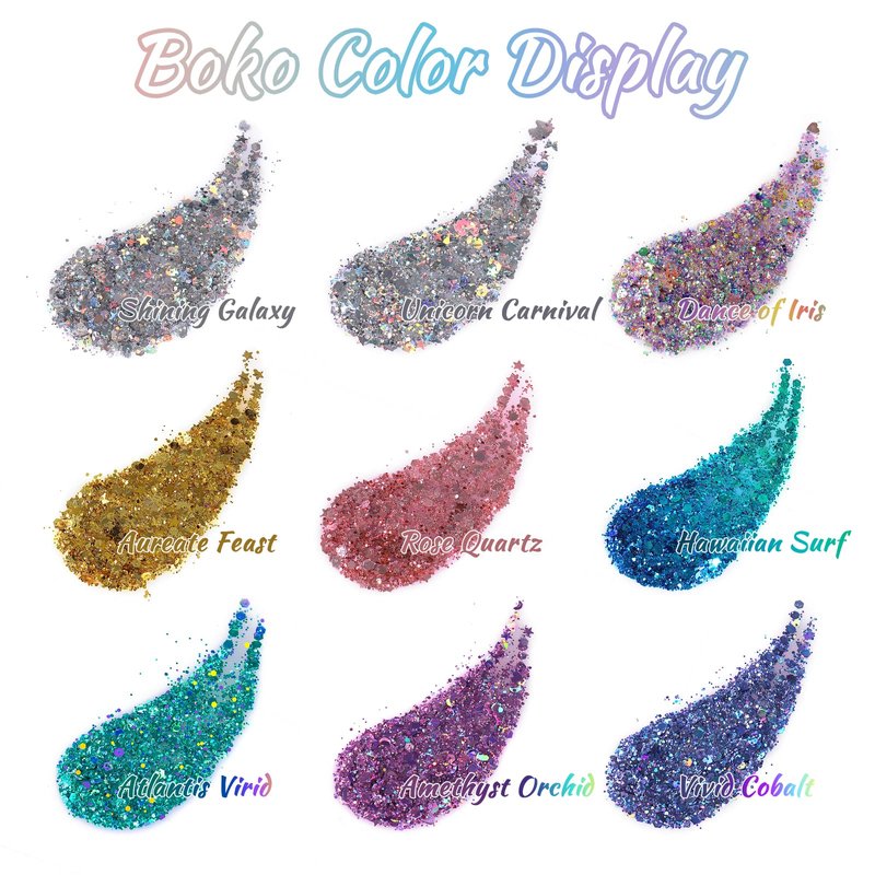 - Applicable to Any Scenarios: Boko mermaid hair and body glitter can be used to retouched your makeup such as for glitter hairspray, mermaid glitter eyeshadow, euphoria mermaid outfit. It can also be used for collarbones, shoulders, arms, and other parts. Whether for daily makeup, birthday parties, weddings, various festival dances, Halloween, bars, or concerts, you can apply BOKO shiny sequins with blue mermaid effects.