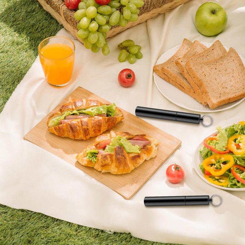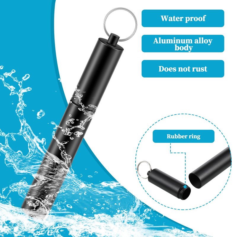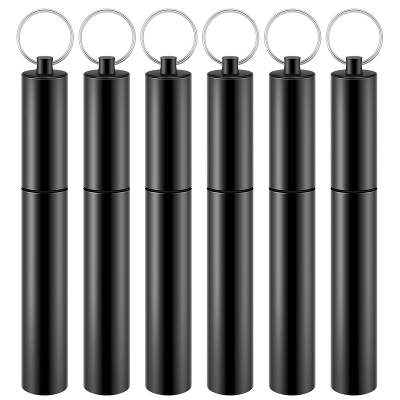 Bokon 6 Pcs Portable Toothpick Holder Airtight Aluminum Metal Tube Joint Tube Storage Tube Waterproof Pocket Purse Tube Container Holder with Keychain for Travel Picnic(Black, Black)