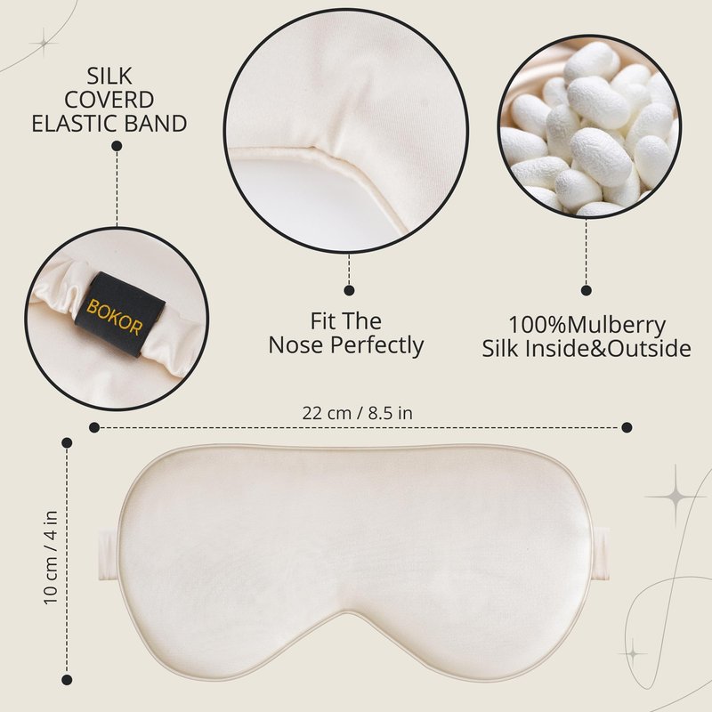 BOKOR Nature Silk Sleep Eye Mask - FSA/HSA Eligible Sleeping Mask, Dark Circles and Puffiness, Improve Sleep, Light Blocking Eye Cover, Ideal Birthday Gift with Gift Package - Champagne