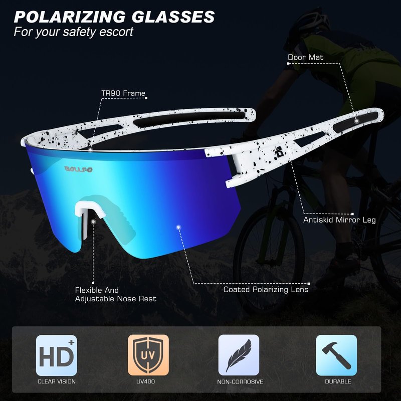 BOLLFO Cycling Sunglasses, UV 400 Eye Protection Polarized Eyewear for Men Women