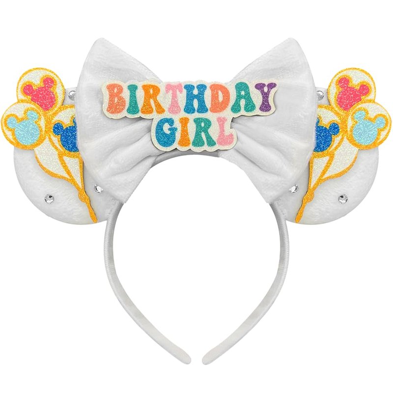 Bolonar Birthday Mouse Ears Headband for Women White Birthday Headband Birthday Party Favors Park Ears Cute Headband Birthday Party Decoration