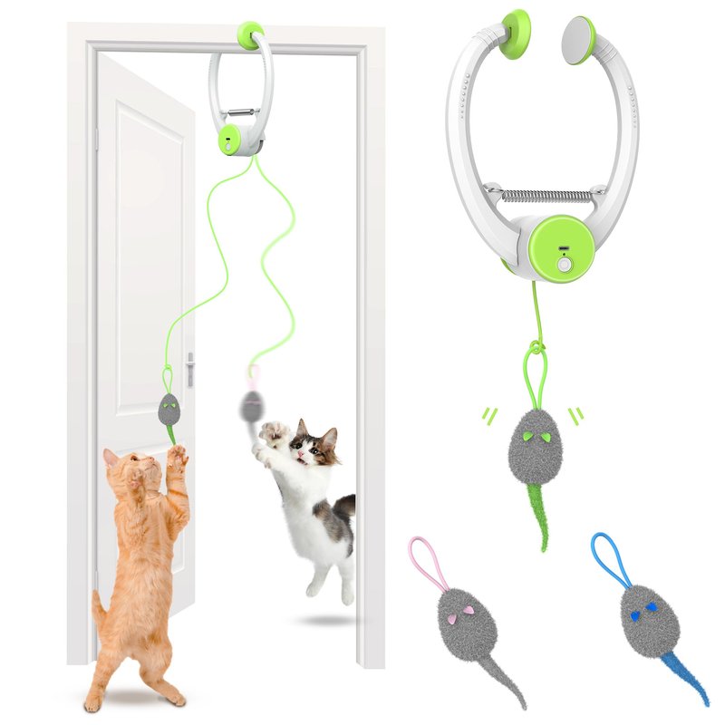 Bolpetizo Cat Toys, Hanging Automatic Interactive Cat Toy, Colorful Bouncing Mice, Extra Long Elastic Rope, Motion Activated Rechargeable Cat Feathers Toys, Interactive Cat Toys for Indoor Cats/Kitten