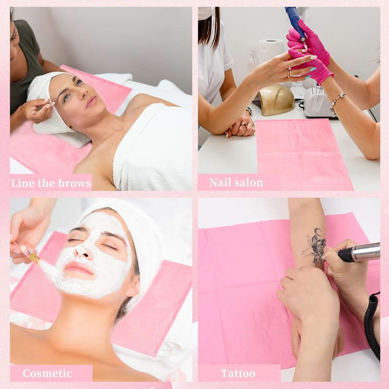 BOMOQING 125PCS Disposable Nail Art Table Mat, Waterproof Nail Tips Art Table Towels Mat, 3 Ply Nail Napkins for Acrylic, Nail Art Mat Paper Sheet, Nail Tips Art Waterproof Pad for Salon (Pink)