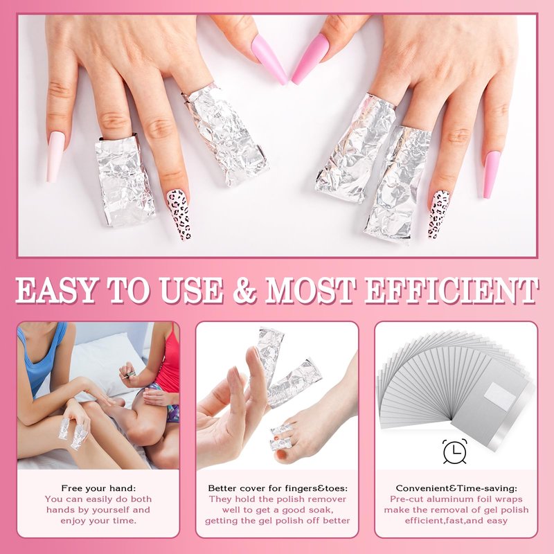 - 【Friendly to Skin】Gel removers for nails are made of high quality aluminium foil and cotton pad. They are non-toxic and odorless, reducing acetone contact with skin, skin-friendly, will not do harm to your nails. Safe to use.