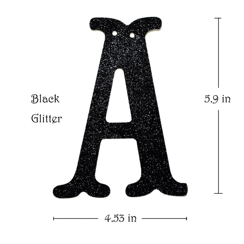 - Includes:9 x Black Glittery Letters, 1 x Black Ribbon