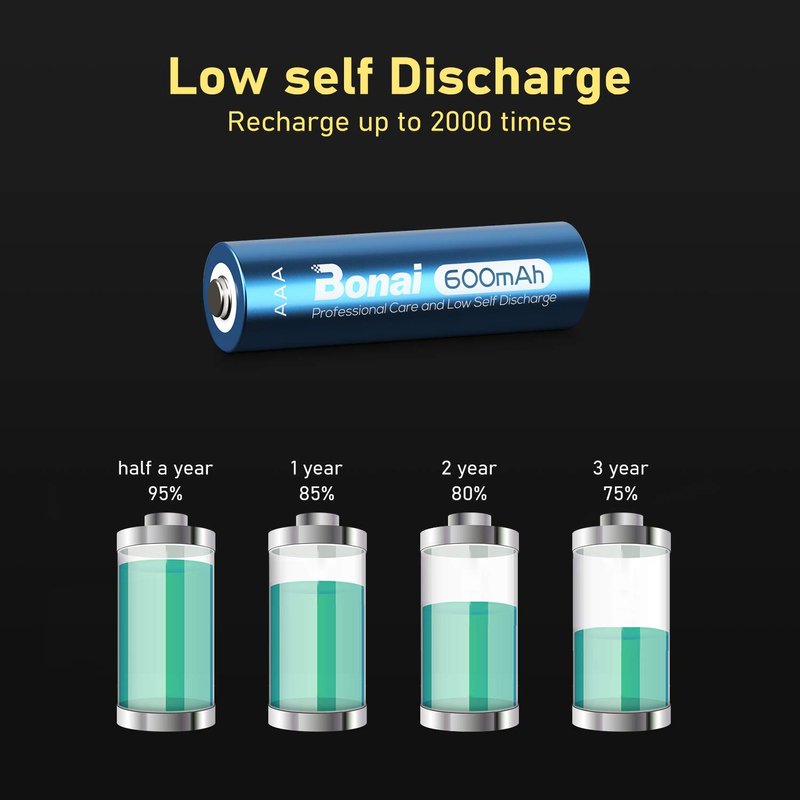 - Enjoy more uninterrupted solar light with Bonai 600mAh High Capacity AAA Rechargeable Batteries that last longer than regular alkaline batteries.