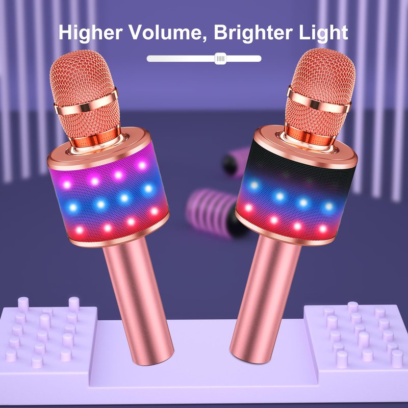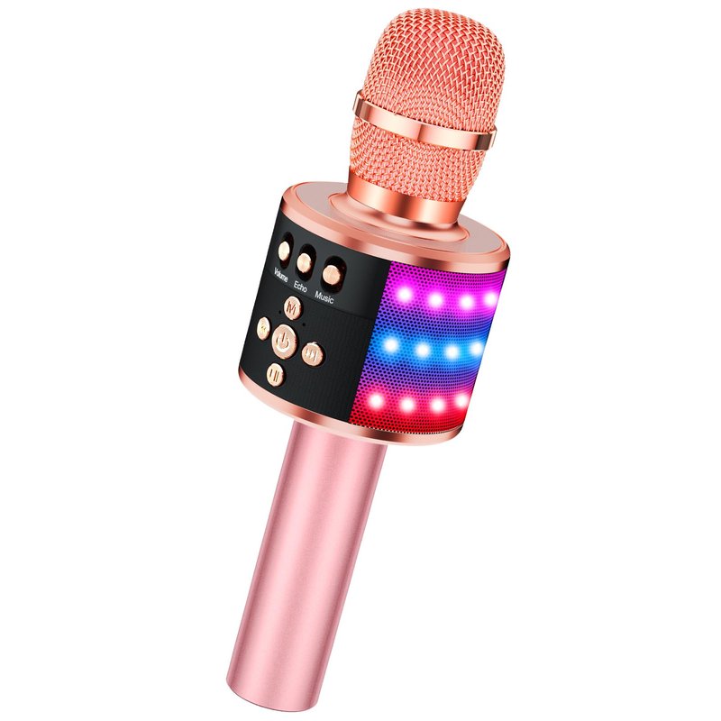 BONAOK Bluetooth Wireless Karaoke Microphone with LED Lights,4-in-1 Portable Handheld Mic with Speaker Karaoke Player for Singing Home Party Toys Birthday Gift for Kids Adults Girls Q78(Rose Gold)