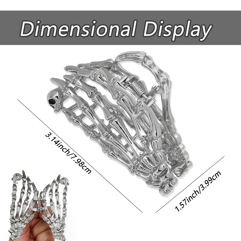 - [Thoughtful Gift] -- Not only suitable for personal use, but the Silver Metal Skull Hand Hair Claw Clip also makes a special gift for friends and loved ones. Its unique design and practicality will convey your thoughtfulness and create beautiful moments for others.