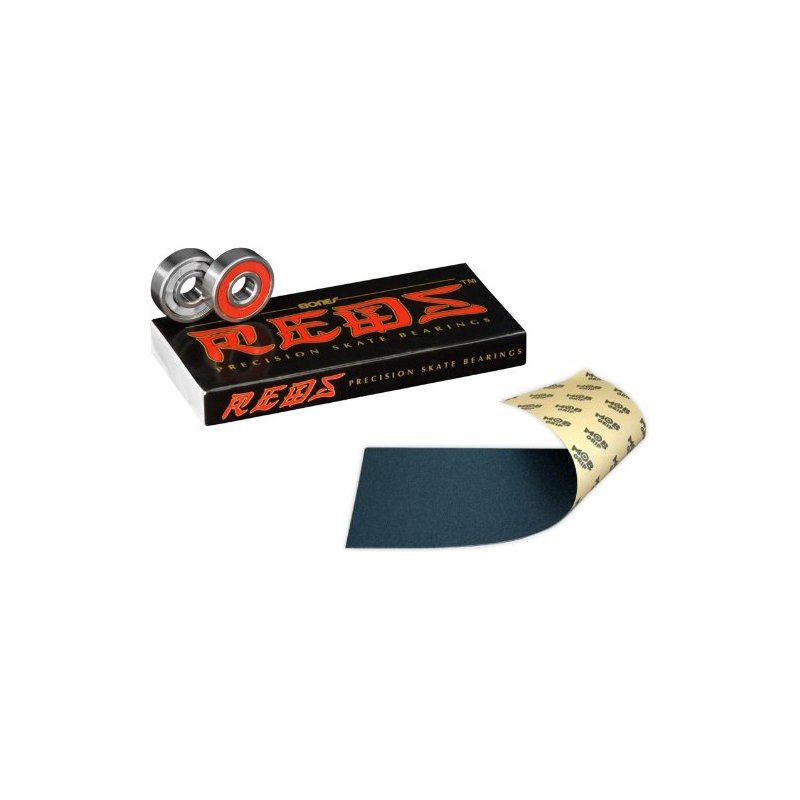 Bones Reds Precision Skate Bearings With Mob Skateboard Grip Tape Sheet Black 9" Bubble Free