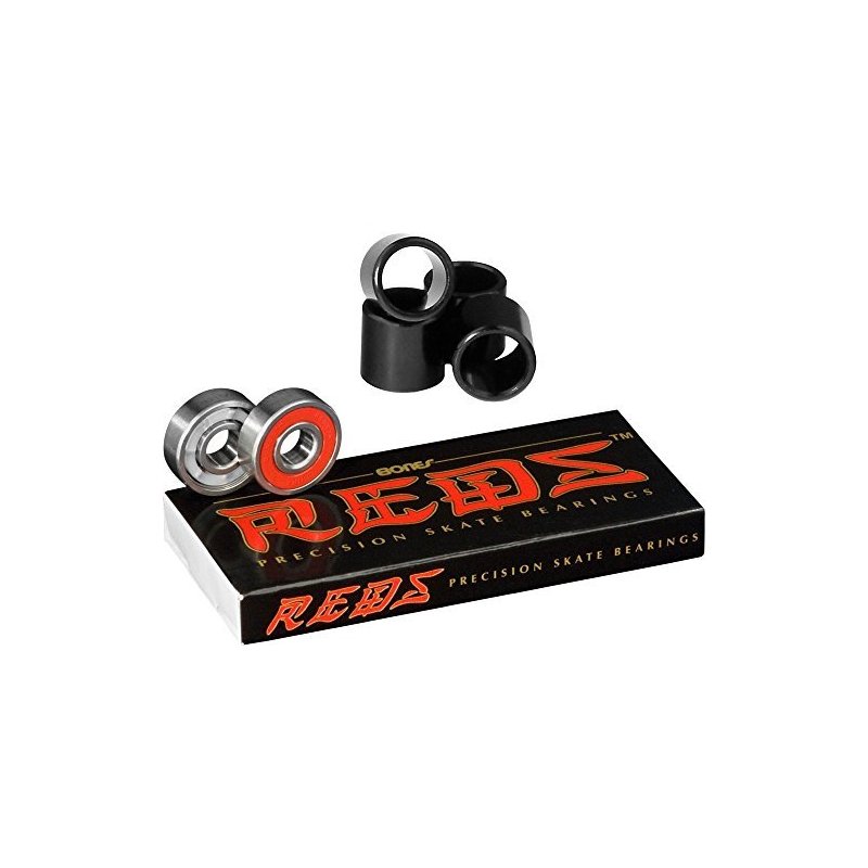 Bones REDS Bearings are the best and most popular priced bearings you can buy. These were developed to be an affordable alternative to Bones Swiss. They feature ground and superfinished chromium steel balls and races, a high speed, removable nylon ball retainer, Bones Speed Cream lubricant and a removable, non-contact, frictionless red rubber shield. Design, quality components and careful quality control makes them faster, smoother and longer lasting than any other skateboard bearing in their price range. Includes 8 Bearings and 4 Spacers.