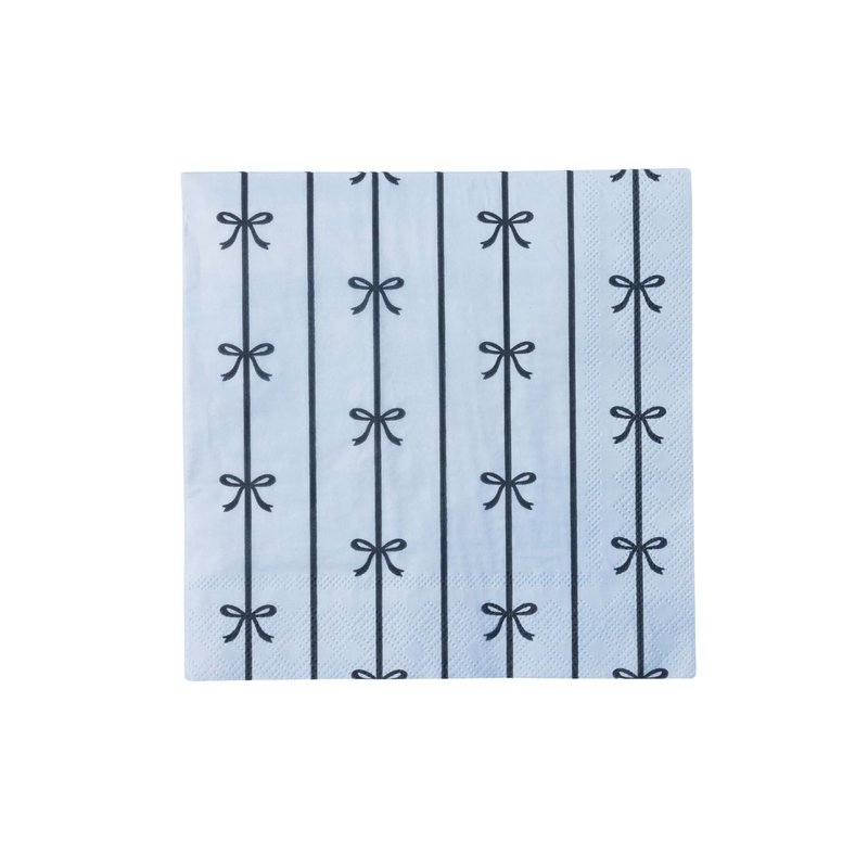 "Add a touch of elegance to your table setting with our Sky Blue Bow Large Napkins, part of the Bonjour Fête Signature Line. These exquisite paper napkins feature delicate bows for a sophisticated touch. Perfect for any occasion, from birthdays to Hanukkah celebrations, these dinner napkins elevate the ambiance and add a touch of luxury. > Includes 20 party napkins > Size: 6.5"" folded square (Large/Lunch Size) > Premium soy-based ink > 3-ply paper napkins > FSC-certified paper, eco-conscious materials > Inspired by the French, Designed in America by Bonjour Fête "