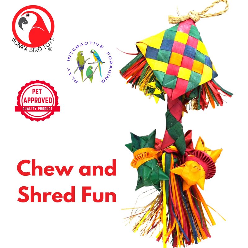 Bonka Bird Toys 03330 Small Rattle Toy for Birds - Multi-Activity Chew & Shred Toy, Natural Palm & Seed Pod, 12" x 5", Conure, Cockatiel, Pionus, and Similar Breeds