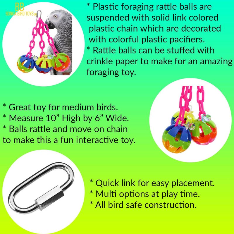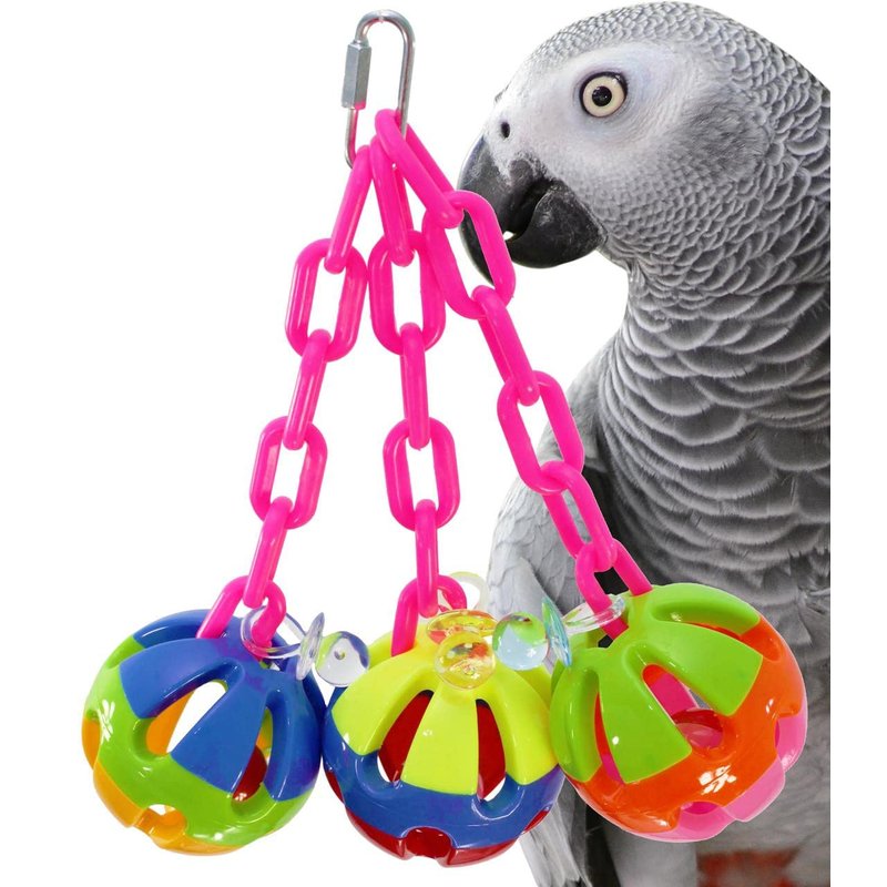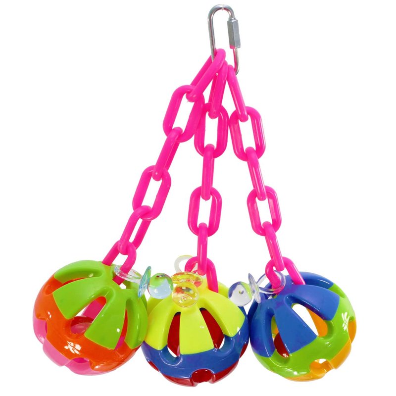 Bonka Bird Toys 1273 Tri-Chain Ball 10" High by 6" Wide Medium Parrot Plastic Cage Toy, African Grey, Pionus, Ringneck, and Similar Sized Birds