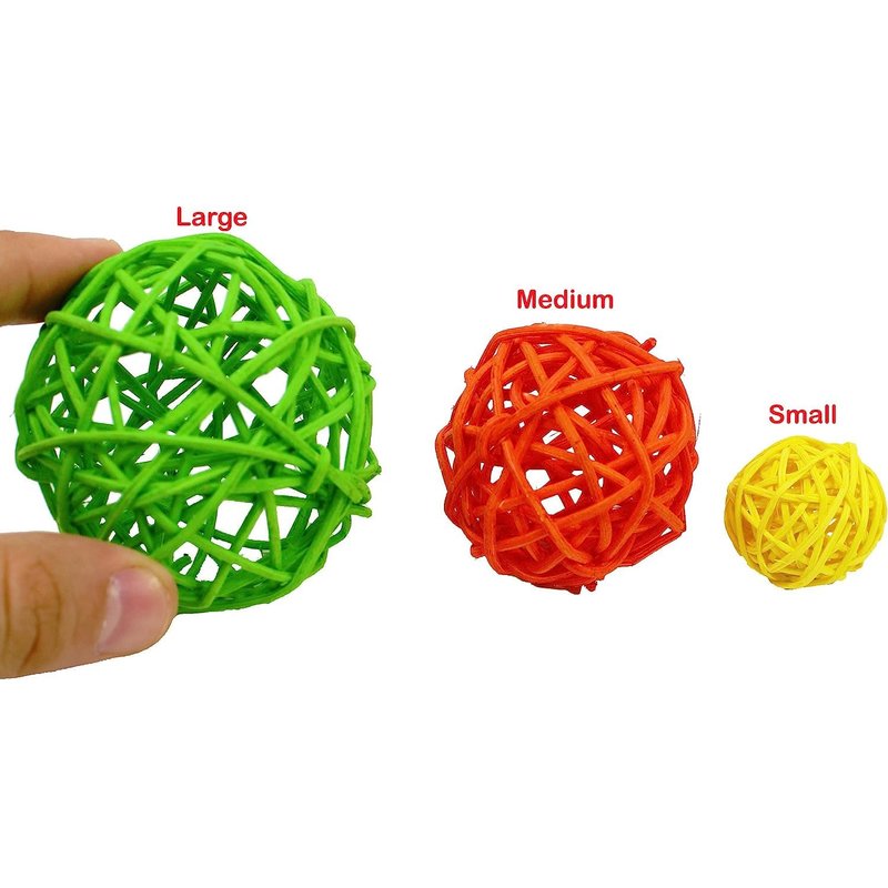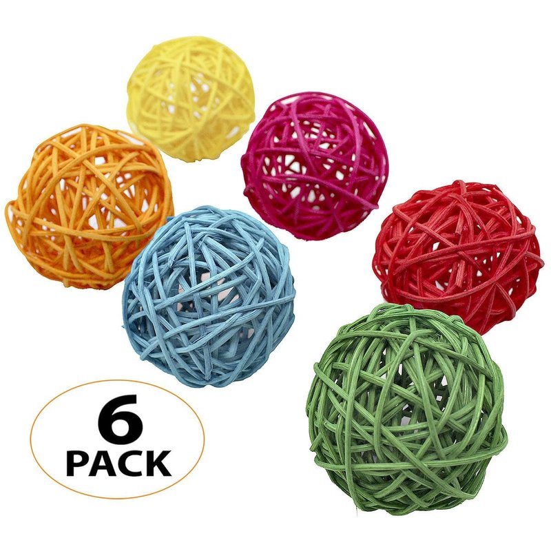 Bonka Bird Toys 1292 Pk6 Medium Colored 2" Vine Balls, Parrot Foot Talon Craft Part Cage Toy, Conure, Amazon, African Grey, and Similar