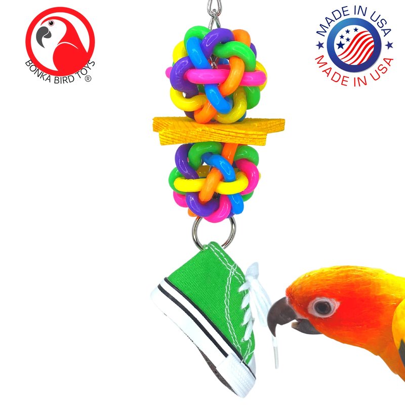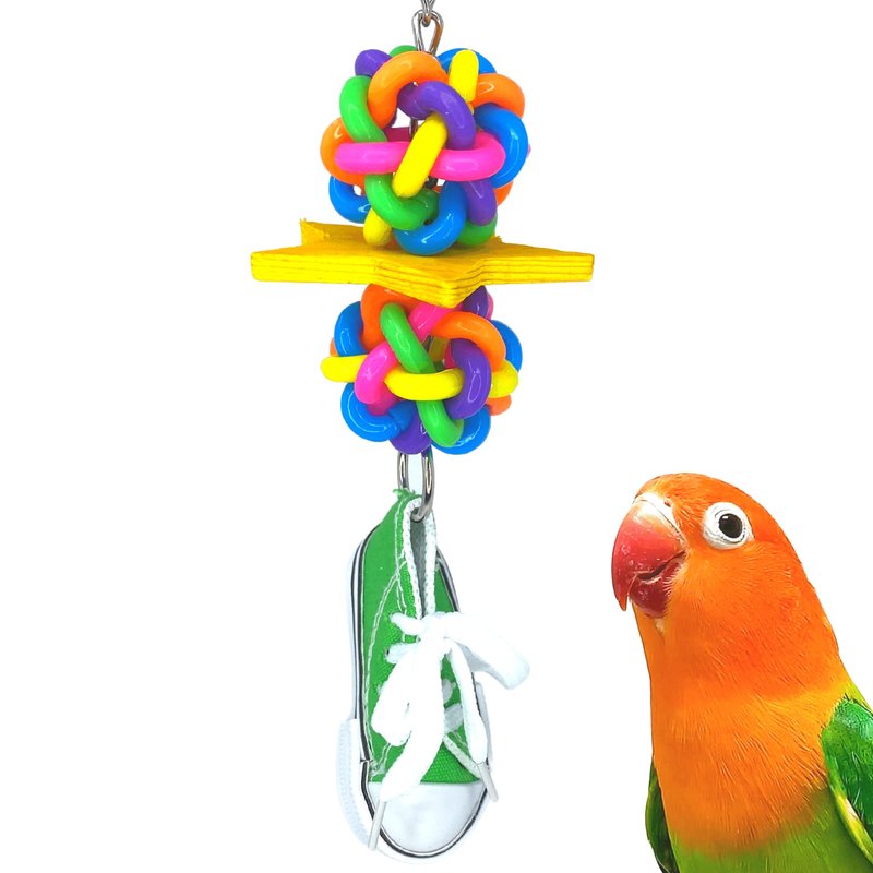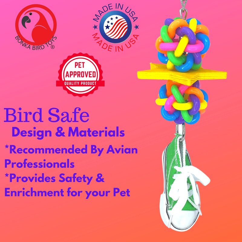 Bonka Bird Toys 1356 Star Sneaker Rubber Chew Wood Cotton Parrot Quaker Parrotlet Budgie Cockatiel