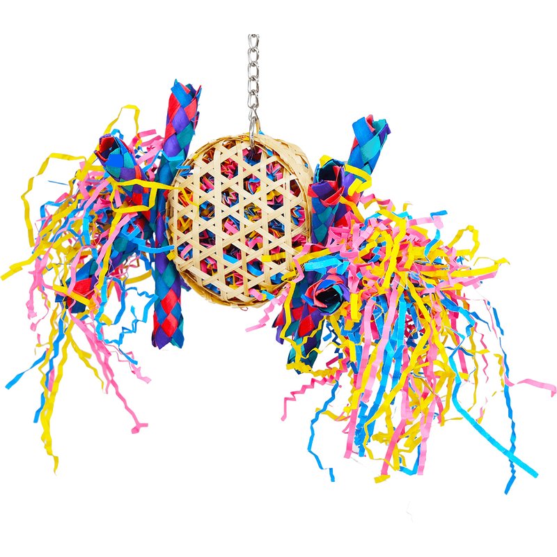 - The 1721 Round Basket from Bonka Bird Toys is a colorful and shreddable foraging delight.