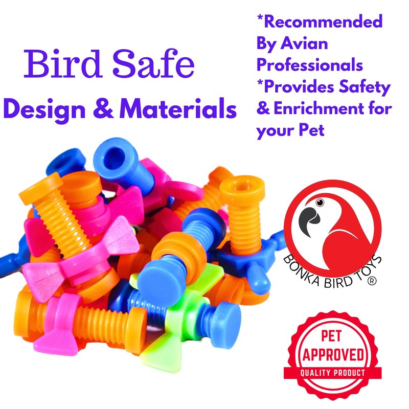 - The 2026 Pk12 Plastic Bolt and Wing Nuts from Bonka Bird Toys are ideal foot and beak bird toys.