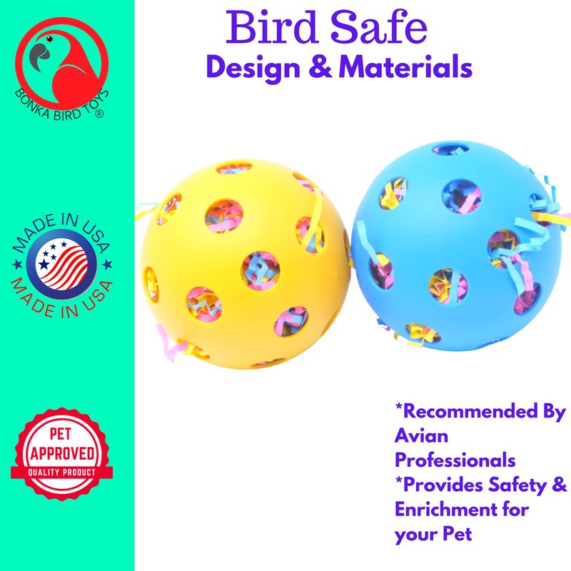 Bonka Bird Toys 2404 Pk2 Huge Stuffed 3.50" Balls, Parrot Foot Talon Chew Craft Part Cage Toy, Conure, Amazon, African Grey, and Similar