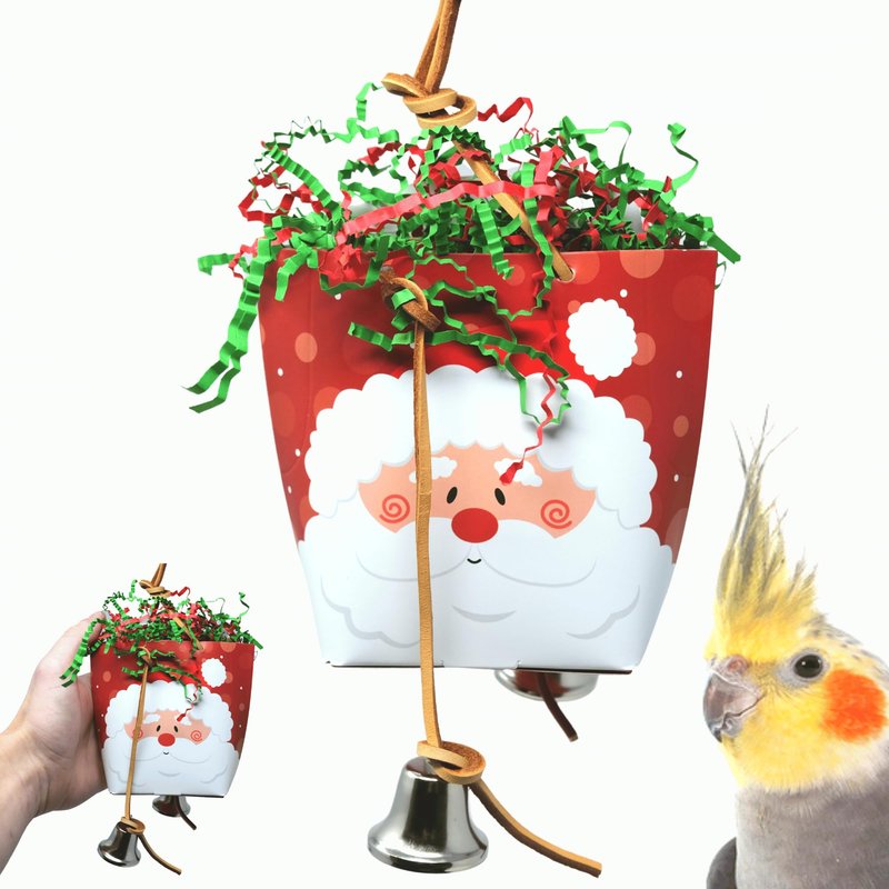 - Festive Design: Enjoy the holiday season with a jolly Santa Claus-themed 2563 Christmas Purse foraging toy that adds a touch of festive magic to your bird's cage.