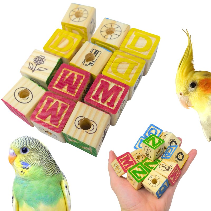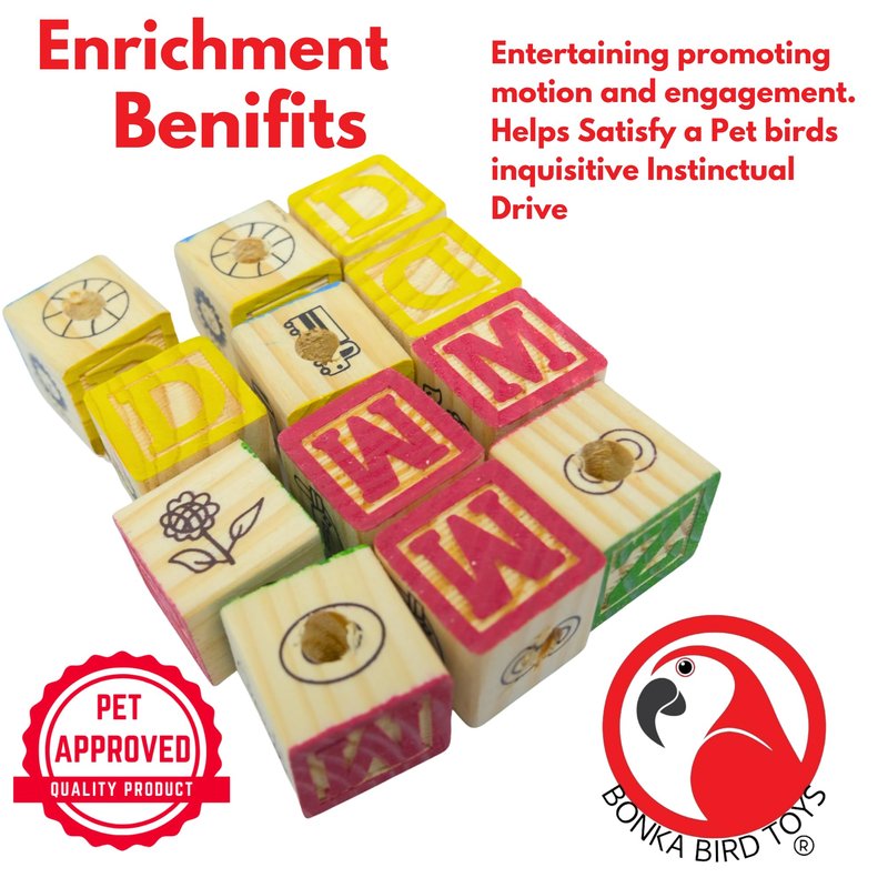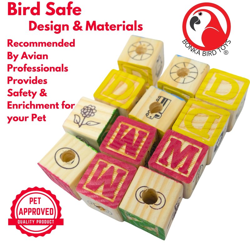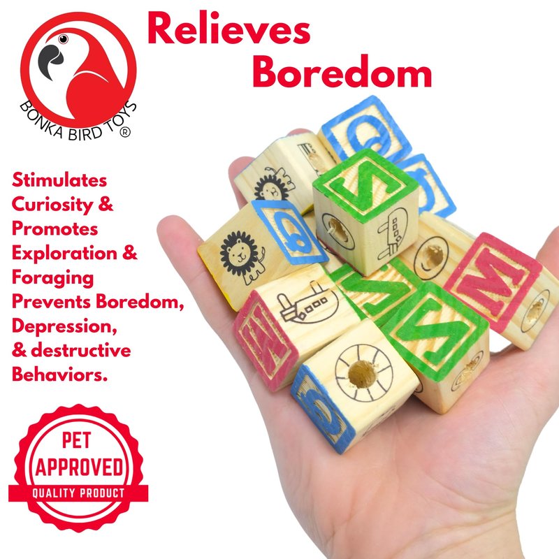 Bonka Bird Toys 2664 PK12 Wooden ABC Blocks Foot Talon Craft Part Parrot Toy, Conure, Amazon, Parakeet, and Similar Breed Sizes