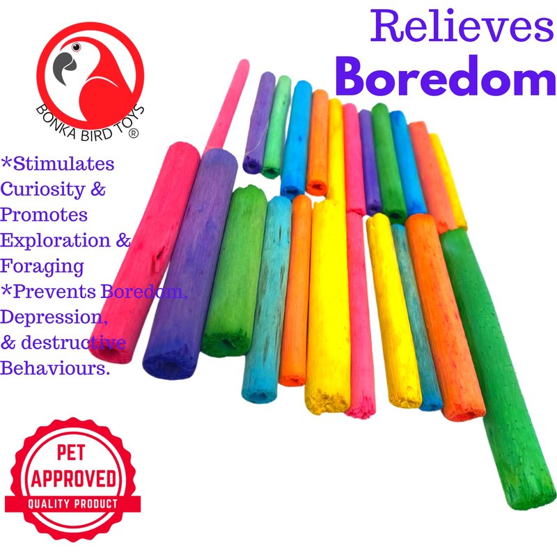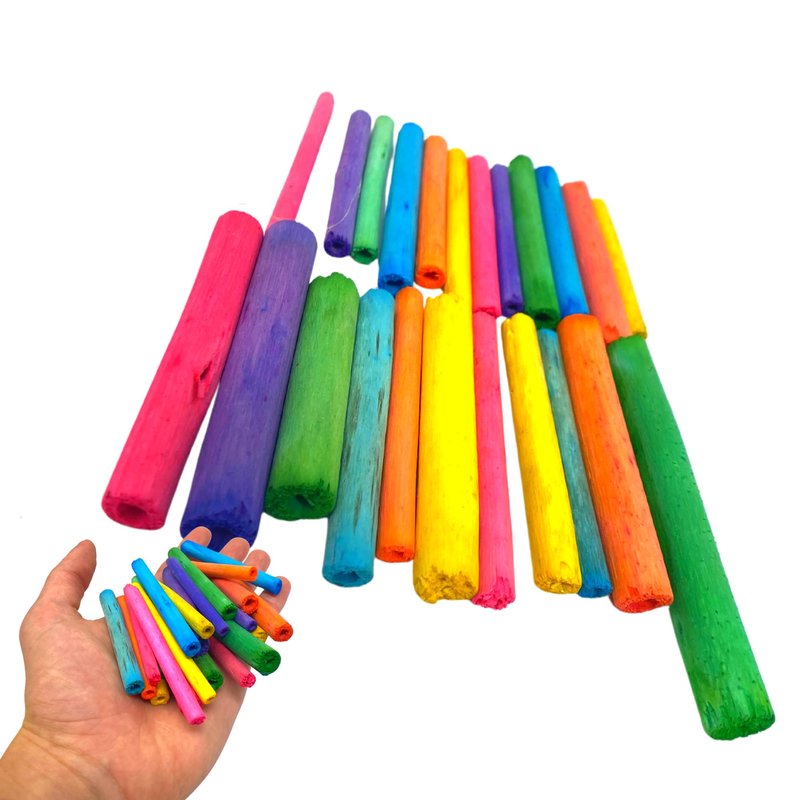 - 2944 PK24 2" Colored Jute Stick from Bonka Bird Toys are ideal chewing and foraging items for pet birds with curious minds and busy beaks