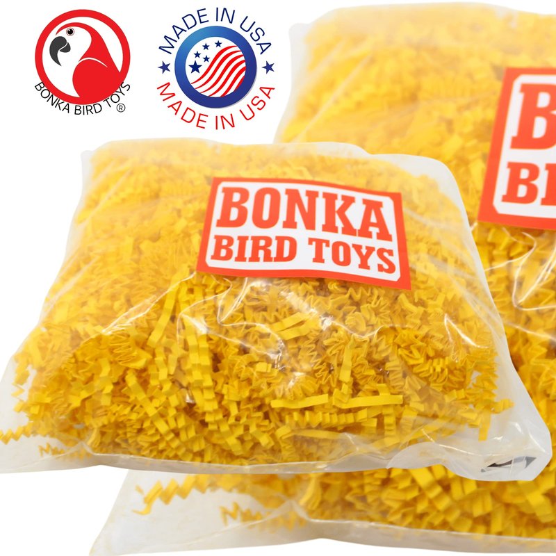 Bonka Bird Toys Colored Crinkle Shred Paper Chew Forage Nesting Natural Multi-Use Craft Part Projects Cockatiels Parakeets Conures Amazons and Other Similar Birds (Yellow)