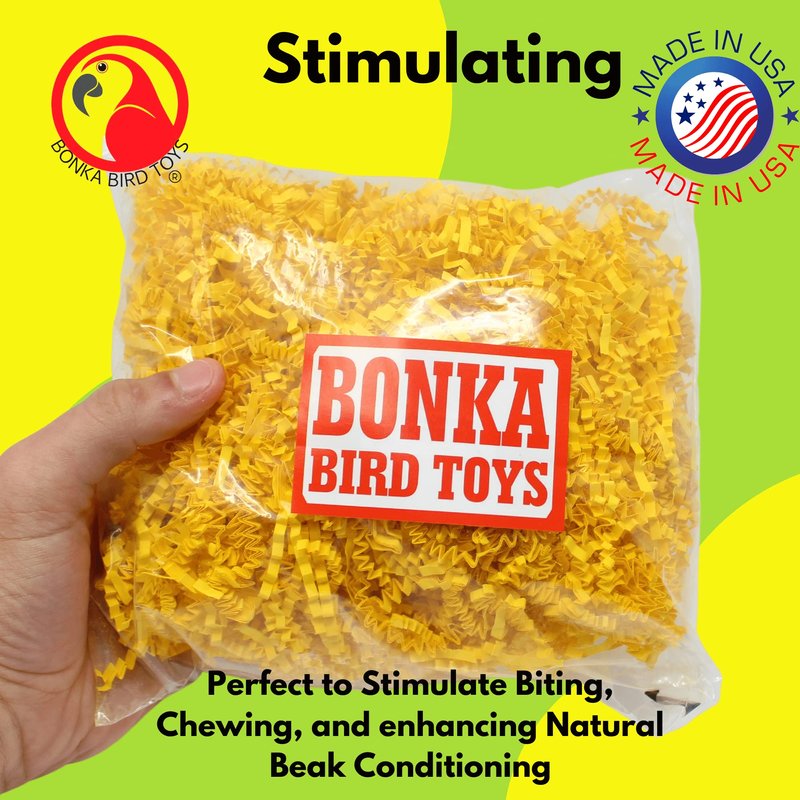 - The Colored Crinkle Shred Paper from Bonka Bird Toys really gets the party started for your birds; it is a versatile shredding material that your feathered friend will adore.