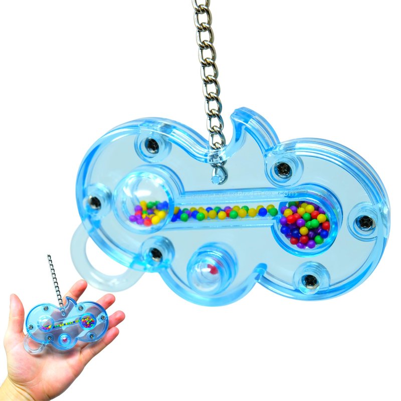 Bonka Bird Toys 0004 Small wave is yet another beak teasing delight of a toy, your small to medium sized bird will have hours of entertaining fun with lots of noise and motion, the virtually indestructible brightly colored plastic body is shaped like a wave and has a narrow channel encased in the center that is filled with solid plastic colorful beads that move from one side to the other as the toy is moved or tilted, each side has a "bubbled" area which gives it more depth and a visual enhancement for your bird, as an added bonus there is a solid loop so you can enhance small wave by adding more of their favorite play toys. It is suspended by a sturdy link Stainless Steel chain and a quick link for easy cage placement, small wave measures approximately 5 inches high by 6 inches wide.