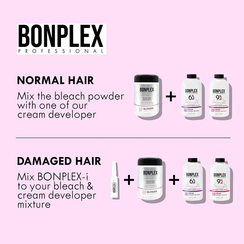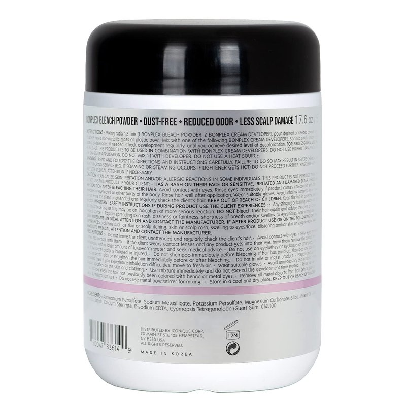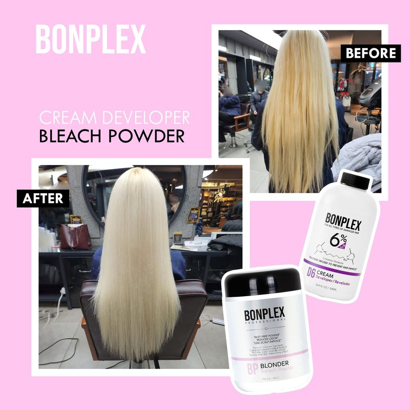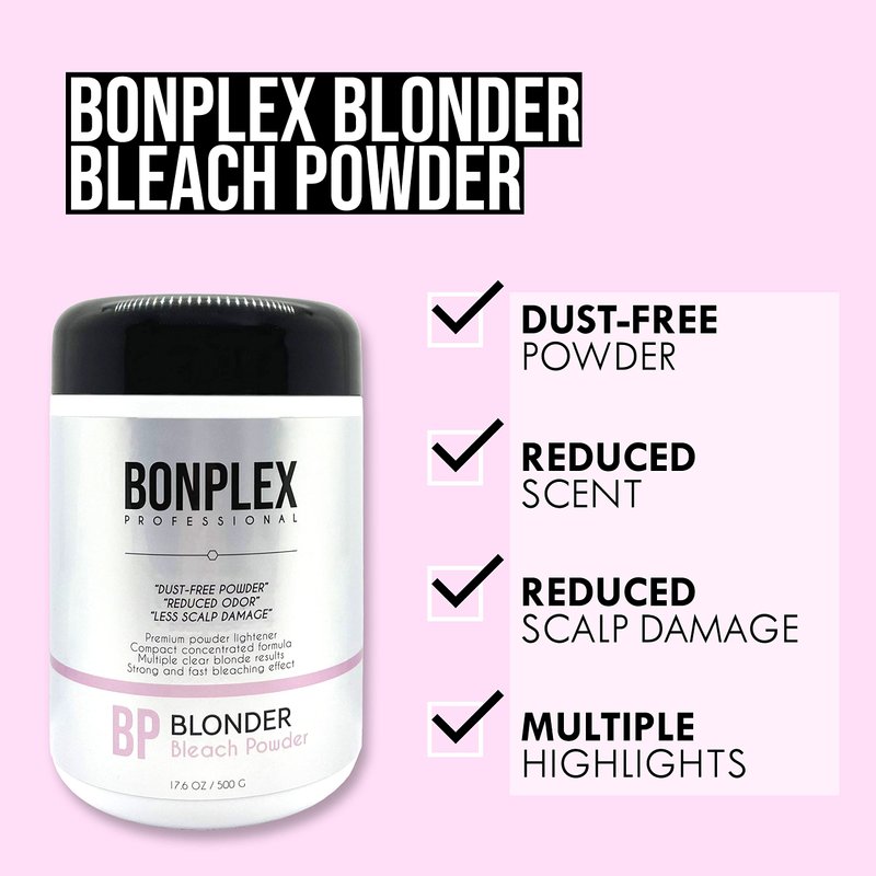 BONPLEX BLEACH POWDER dust-free, reduced odor, less scalp damage formula is a premium powder lightener with a compact concentrated formula giving multiple clear blonde results with strong and fast bleaching effect.