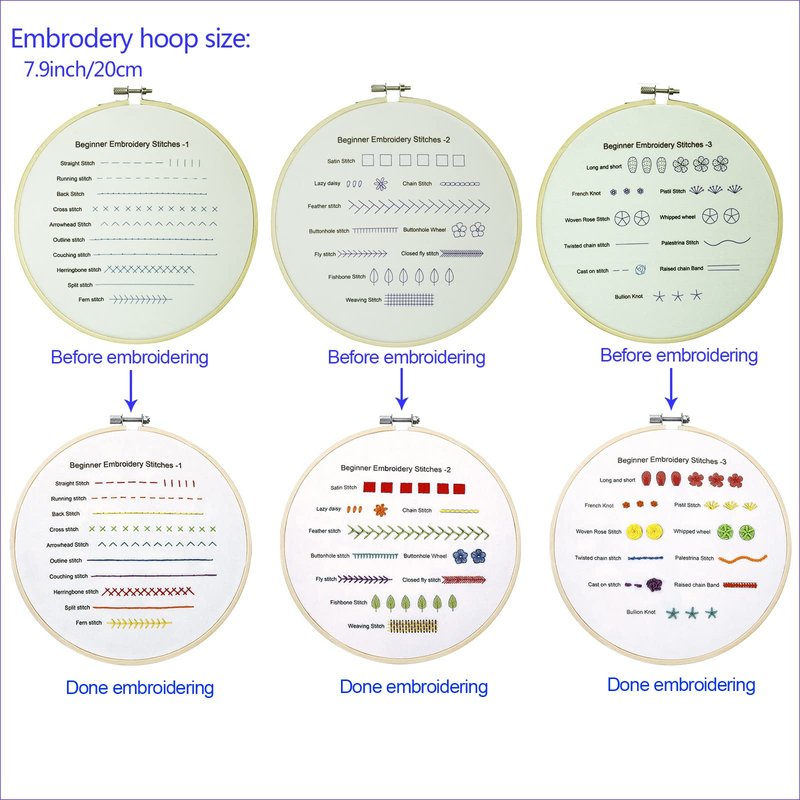Bonroy Beginners Embroidery Stitch Practice kit, 3 Sets Embroidery Kit to Learn 30 Different Stitches for Craft Lover Hand Stitch with Embroidery Fabric with Embroidery Skill Techniques