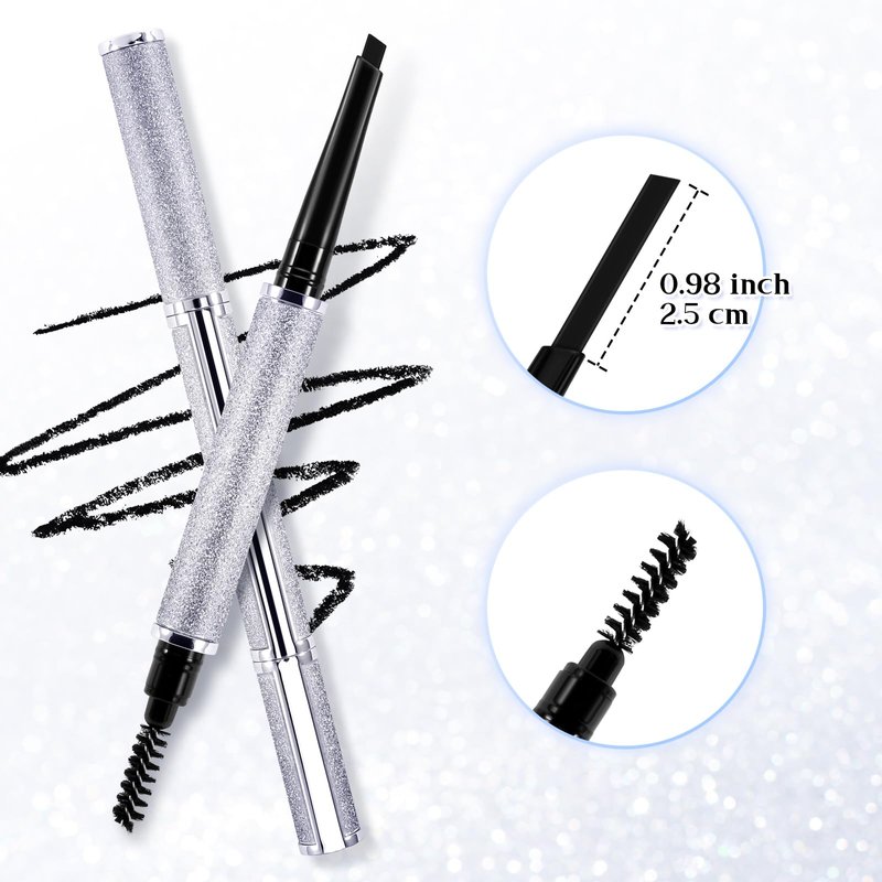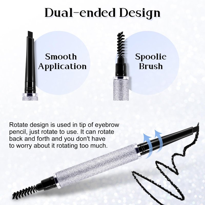 - Dual-ended Design: One end is a angled + flat tip eyebrow pencil. The other end is a soft spoolie brush. Brow pen instantly shapes, defines & fills in your brows.