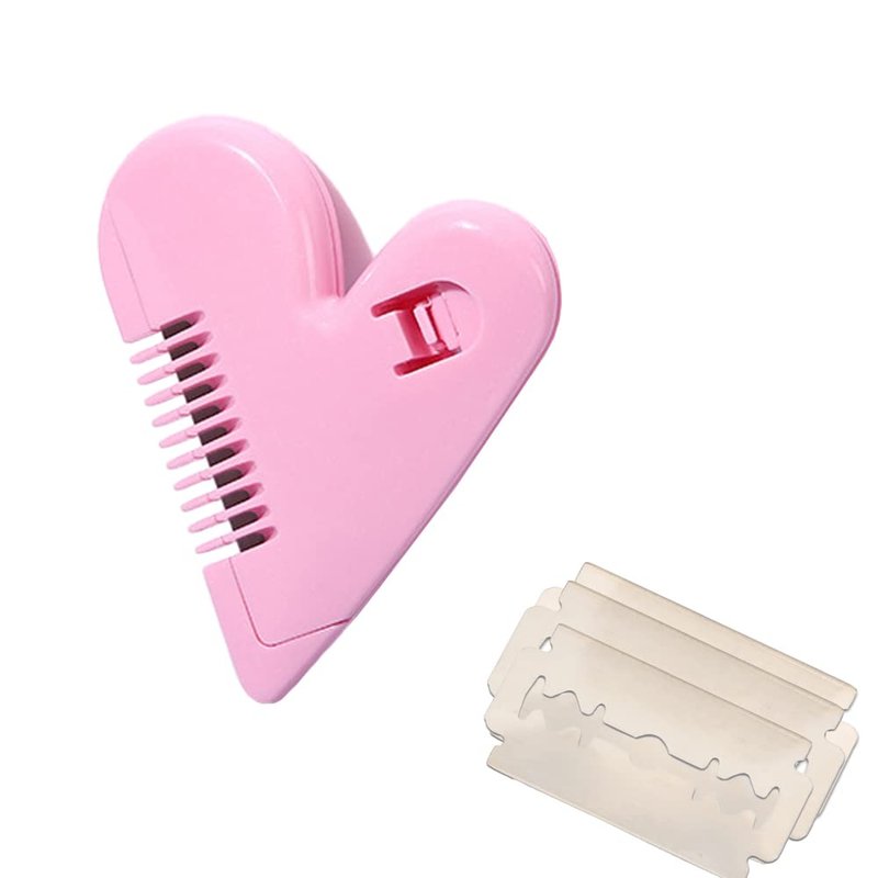 1 Pc Manual Hair Trimmer with 10 Razor Blades for Women, Peach Heart Double Sided Hair Razor Comb Cutter Children's Hair Cutting Comb Self Trimmer