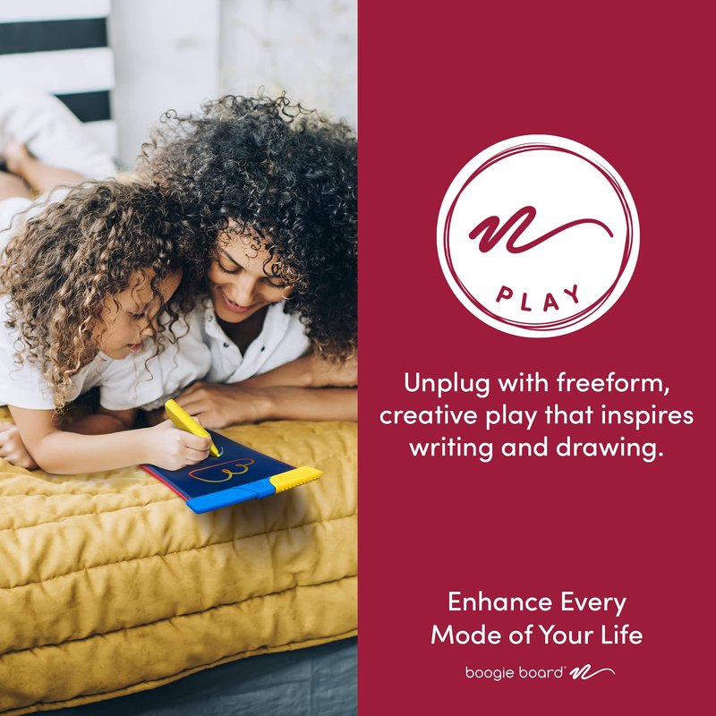- AUTHENTIC: The reusable kids drawing board uses Boogie Board’s patented technology made of scientifically engineered materials, which offers a natural writing experience and a bright, durable screen that lasts for years.