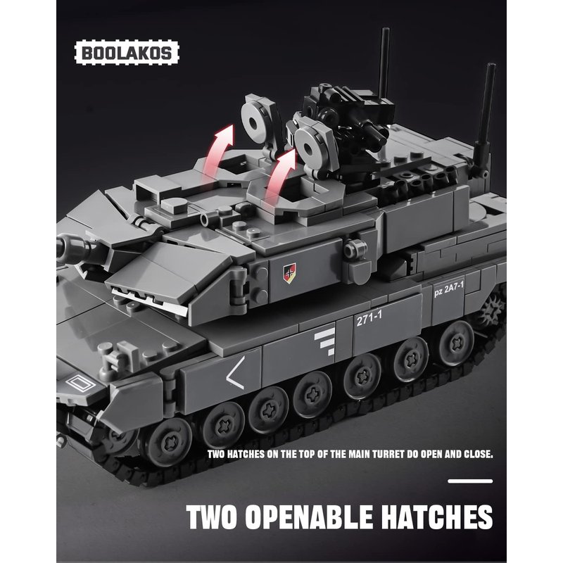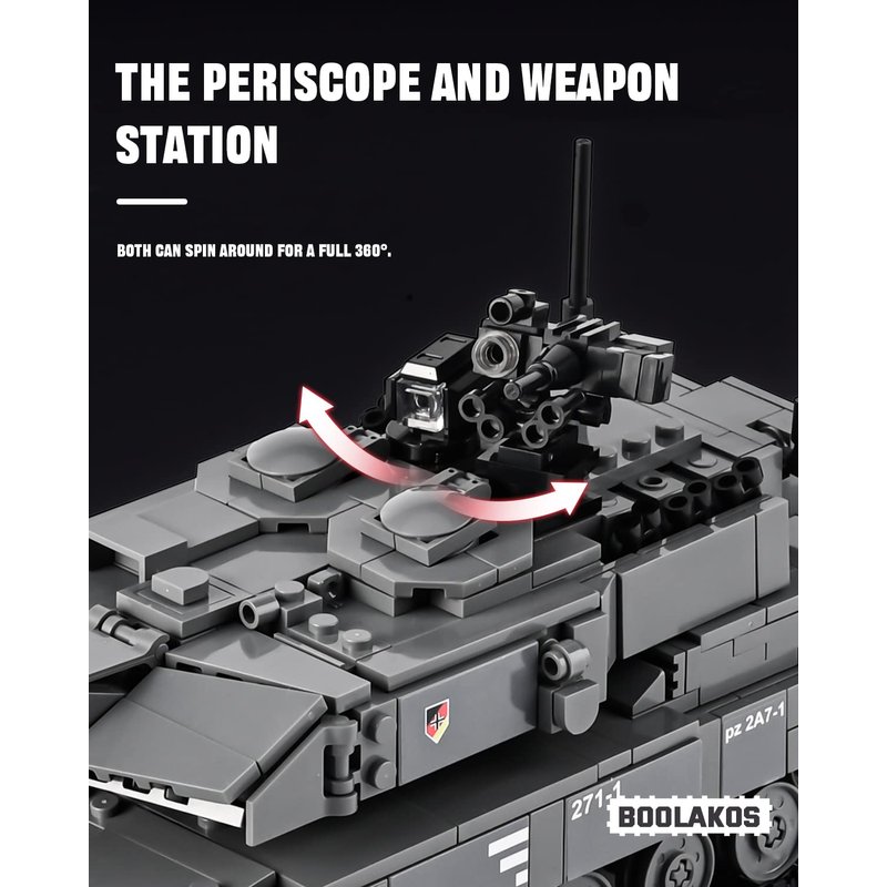 - Rich Design: This building set is based on the prototype of Leopard II A7+ Main Battle Tank, highly restores every details. 360 degrees rotating fort turret with adjustable main gun, 360 degrees periscope and roof-mounted remote weapon station, the openable hatch and engine compartment door and so on.