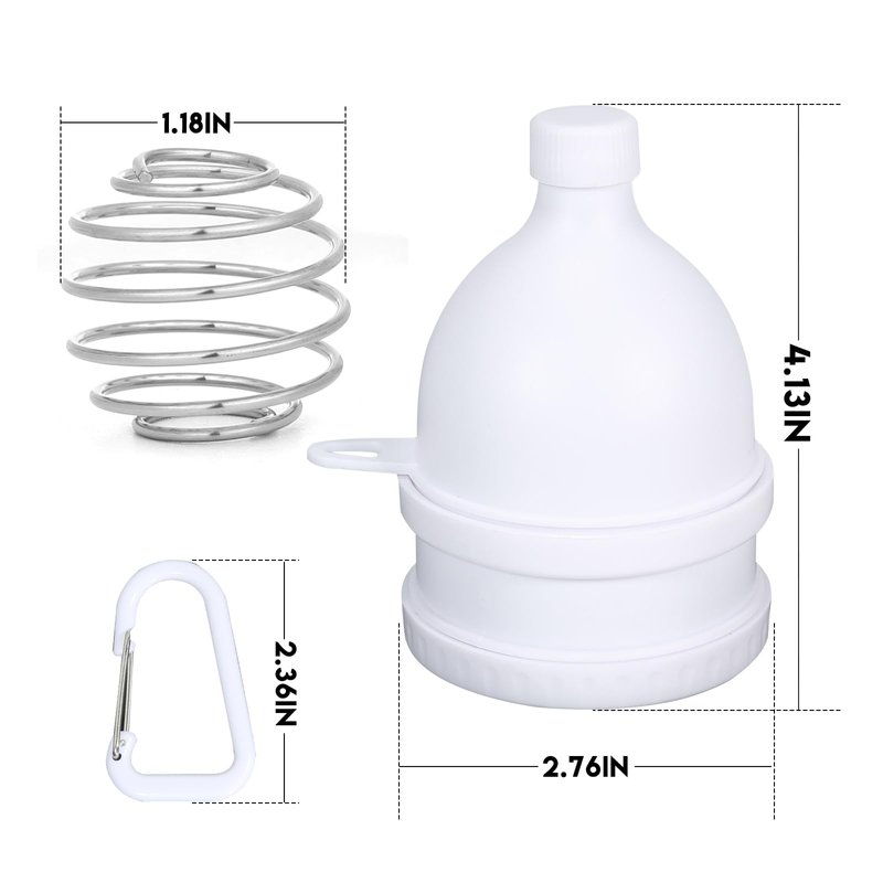 - 【Package Includes】2 Protein Powder Funnel (white and black),2 Keychain and 2 SHAKER BOTTLE BALL(made of 18/8 food-grade stainless steel), Great for Workout, Travel, To-Go, Fitness.