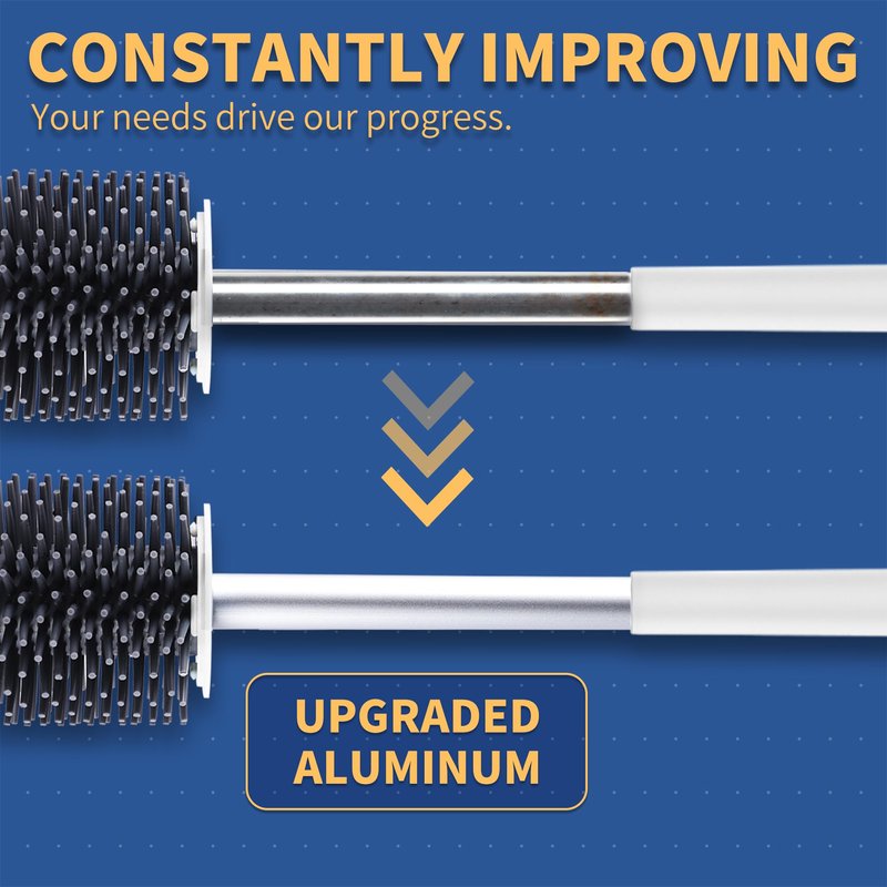 Introducing BOOMJOY's Toilet Brush Set – Your Ultimate Bathroom Essential! Upgrade your bathroom with the BOOMJOY Toilet Brush Set, a perfect blend of style, functionality, and innovation. With a wealth of vibrant colors to choose from, our set complements any bathroom decor, adding a touch of elegance to your space. What sets us apart is the versatility we offer. Our toilet brush comes with two distinct brush head styles, catering to your unique cleaning needs. The silicone brush head excels at precision cleaning in tight crevices without harming the toilet bowl's enamel. Meanwhile, the traditional bristle brush head is perfect for deep cleaning, especially for those stubborn stains or damaged enamel. You have the power to choose the brush head that suits your cleaning requirements. We've also upgraded the handle material to durable aluminum, ensuring both aesthetics and practicality. Say goodbye to rust concerns, as our aluminum handle guarantees a sleek appearance that lasts. But that's not all – our exclusive design innovation includes a hidden tweezer at the handle's top, making it easier than ever to clear drain hair, replace sink filters, and retrieve small items or jewelry that may accidentally fall into the toilet. And the benefits don't end there. With a generous total length of 16 inches, our toilet brush allows you to clean edges, crevices, and even pipes with ease. No more worrying about dirty water splashes; our extended handle ensures a cleaner experience during use. Upgrade your bathroom cleaning routine with the BOOMJOY Toilet Brush Set – the perfect combination of style, versatility, and durability. Don't miss out on this essential addition to your bathroom decor and organization. Elevate your bathroom essentials with BOOMJOY today!