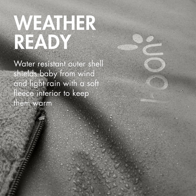 - Weather Ready: The water resistant outer shell of this stroller cover shields baby from wind and light rain with a soft fleece interior to keep them warm while they ride comfortably inside