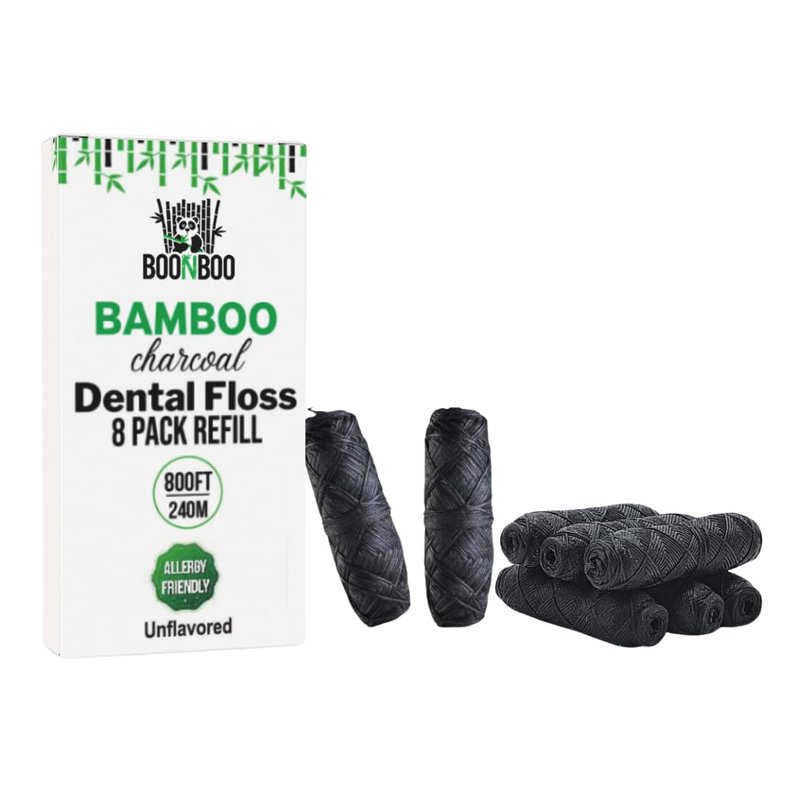 BOONBOO Dental Floss Refill, Bamboo Charcoal Woven Thread, 8 Pieces, Unflavored