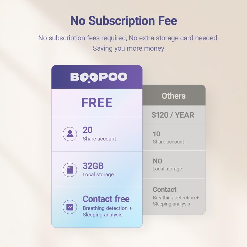 - 【No Monthly Fees & 32GB Local Storage】 The BOOPOO Smart Baby Monitor is available for a one-time purchase, granting you immediate access to all its excelent features without any hidden fees. Enjoy peace of mind with the built-in 32GB local storage, ensuring the security of your data without unexpected charges.