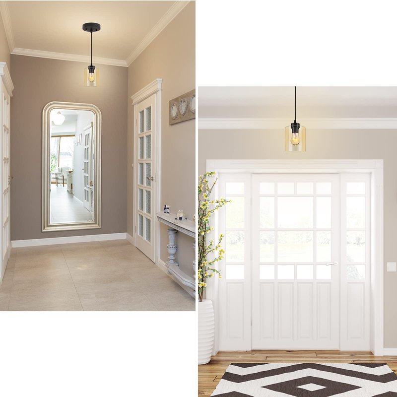 - Fashion Decor and Industrial Style: Matte black pendant lighting with clear glass Cylinde shades and simple lines completes the look with a hint of modern Industrial character(Bulb Not Included). this ceiling pendant light fits perfectly with any style decor from modern Industrial to the farmhouse which is a great idea for your dining room, kitchen island, powder room, dressing table, mirror cabinets, vanity table, foyer, hallway, bathroom, coffee shop, art display.