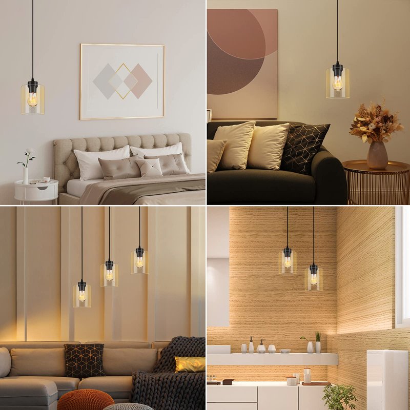 - Compatible With Most Standard Medium Base Bulbs: The Clear Glass Cylinder Shade Size is (5.51'' D x 6.69'' H), You can use any E26 standard base bulbs (Max 60W for each bulb) such as LED(Max. 15W LED BULB Equivalent 60W incandescent), CFL, incandescent, and halogen bulbs(Bulbs not included). And the Big shade allows you to choose other different style bulbs and color temperatures to create multiple atmospheres to your house. Our pendant lights is also designed to be dimmable when used with a dimmable bulb and compatible dimmer switch. creating the atmosphere you want.
