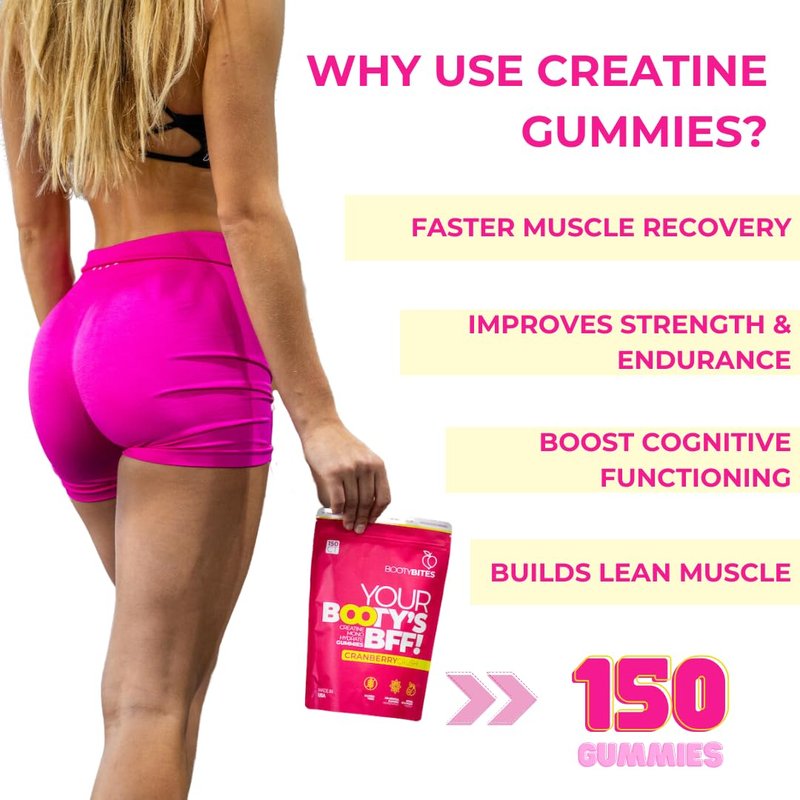 Booty Bites Creatine Monohydrate Gummies, 5g, Natural Supplement, Booty Lift, Post Workout Recovery, Muscle Builder, Boost Energy, Gluten Free, Cranberry Flavor (150)