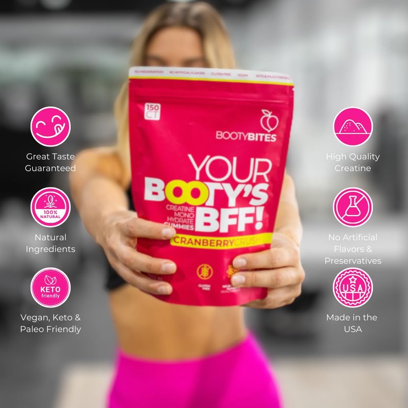- YOUR BOOTY’S BFF: Meet your fitness goals with our natural, creatine & cranberry gummies with all natural ingredients to maximize effectiveness.