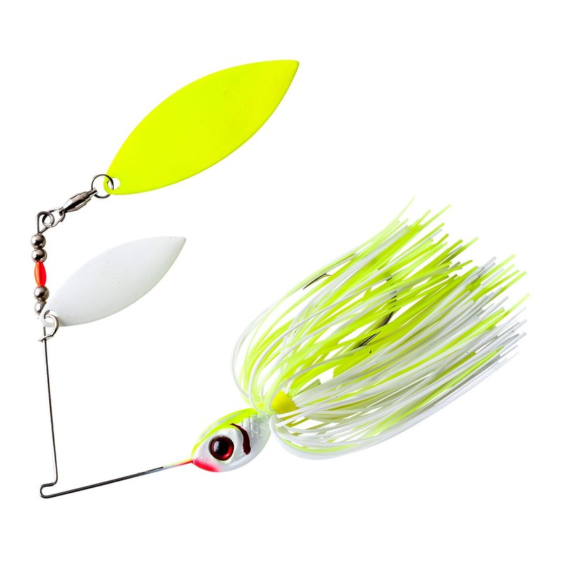 BOOYAH Glow Blade Spinner-Bait Bass Fishing Lure, Chartreuse White, Double Willow (3/8 oz), One Size, Model: BYGBW38616