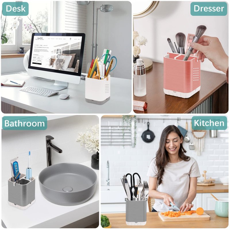 - ☞【Multifunctional storage】The electric toothbrushes, razor,comb,dental floss and makeup brush and more can be neatly placed inside this countertop to organizer and storage. Saves space and lets your messy counter of bathroom, venity, kitchen, desk ect. no longer in chaos.