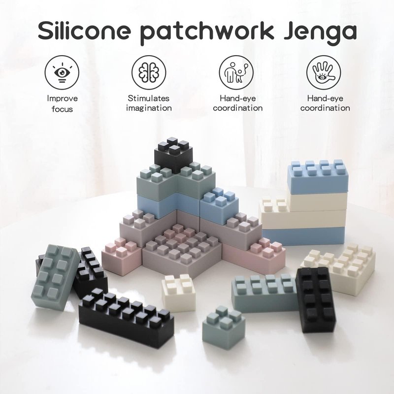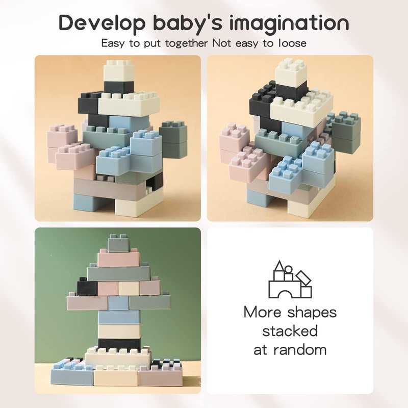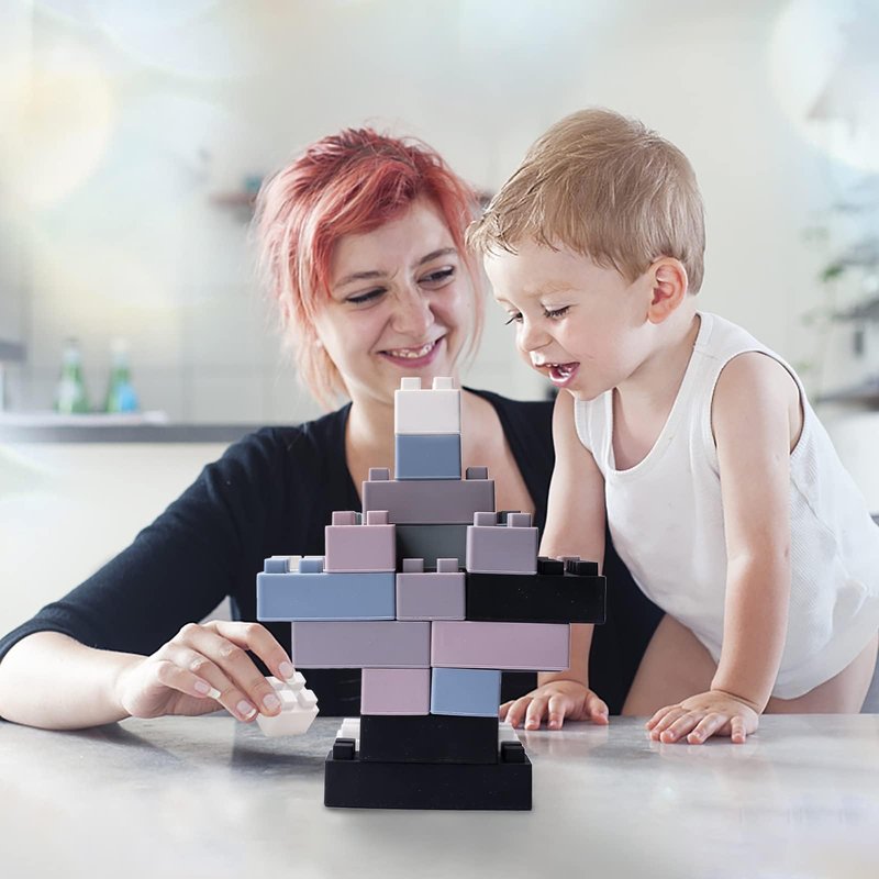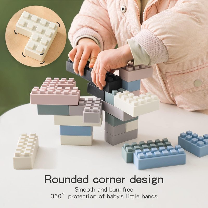 bopoobo Children's Building Blocks Safe and Chewable Soft Silicone Building Blocks Montessori Sensory Toy